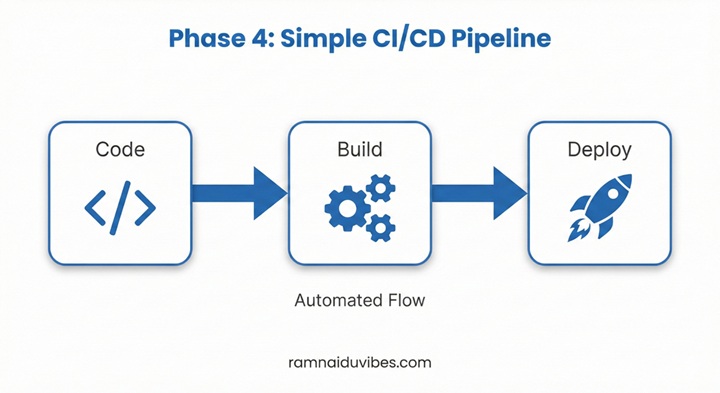Concept: Automating the software release. When a developer saves code, the pipeline automatically tests it and deploys it to the server.
