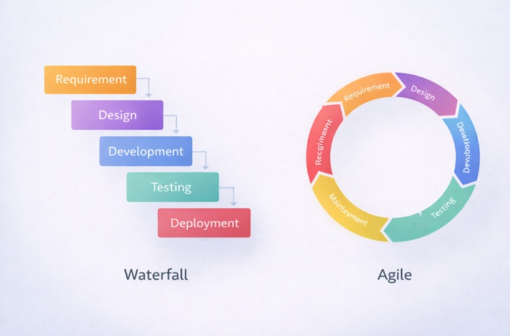 - How it works: You finish Phase 1 completely before starting Phase 2. Like a waterfall, you cannot go back up.